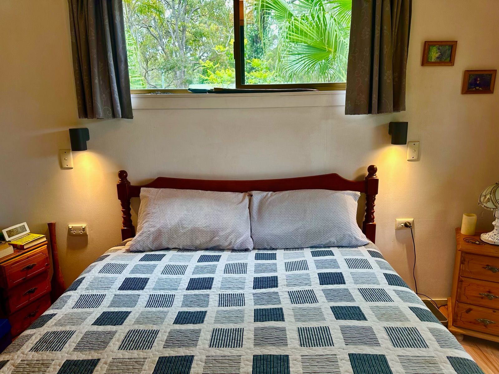 All rooms are light and airy with great views over lush gardens whilst still maintaining privacy. An echo deck on 3 sides of the house accessible from both bedrooms and the lounge provides either sun or shade depending on your needs as well as catching the breeze ( or not )