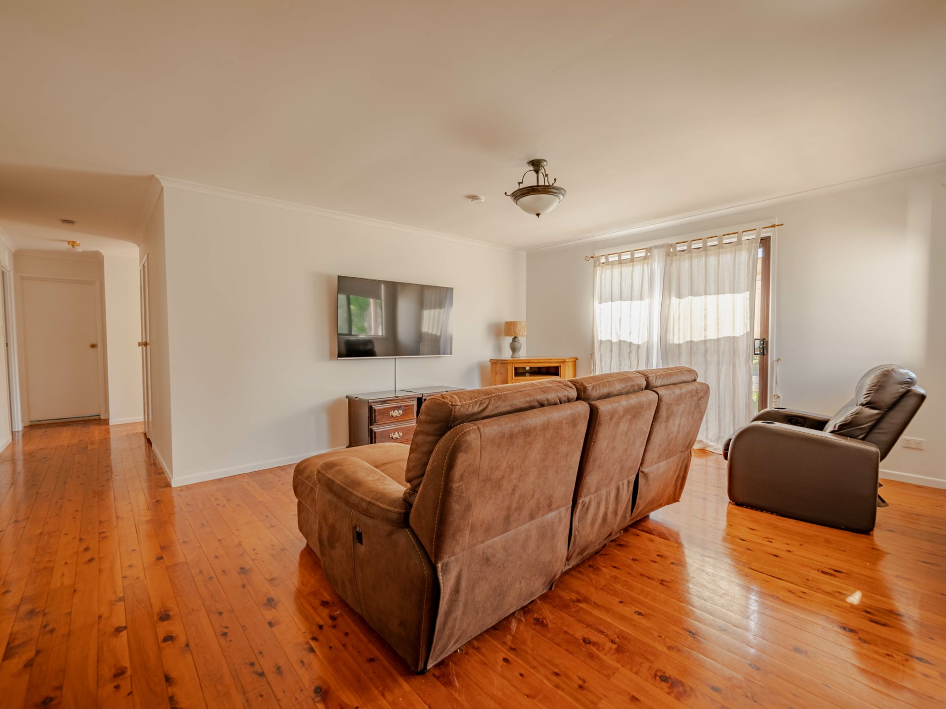 This delightful 3-bedroom, 2-bathroom home offers a perfect blend of comfort and functionality, set on a generous 713 sqm block. The spacious kitchen, living, and dining areas are ideal for family life, while the built-in outdoor entertaining spaces are fitted with stylish plantation shutters, allowing for natural light and a seamless indoor-outdoor flow.