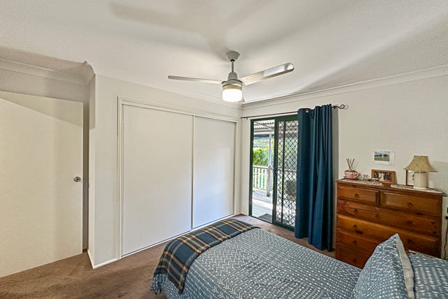 Featuring three generous bedrooms, each with built-in robes and direct access to a private rear deck, this home is designed for easy living. The deck provides a tranquil space to relax while overlooking the lush back garden — and also conveniently houses the laundry.