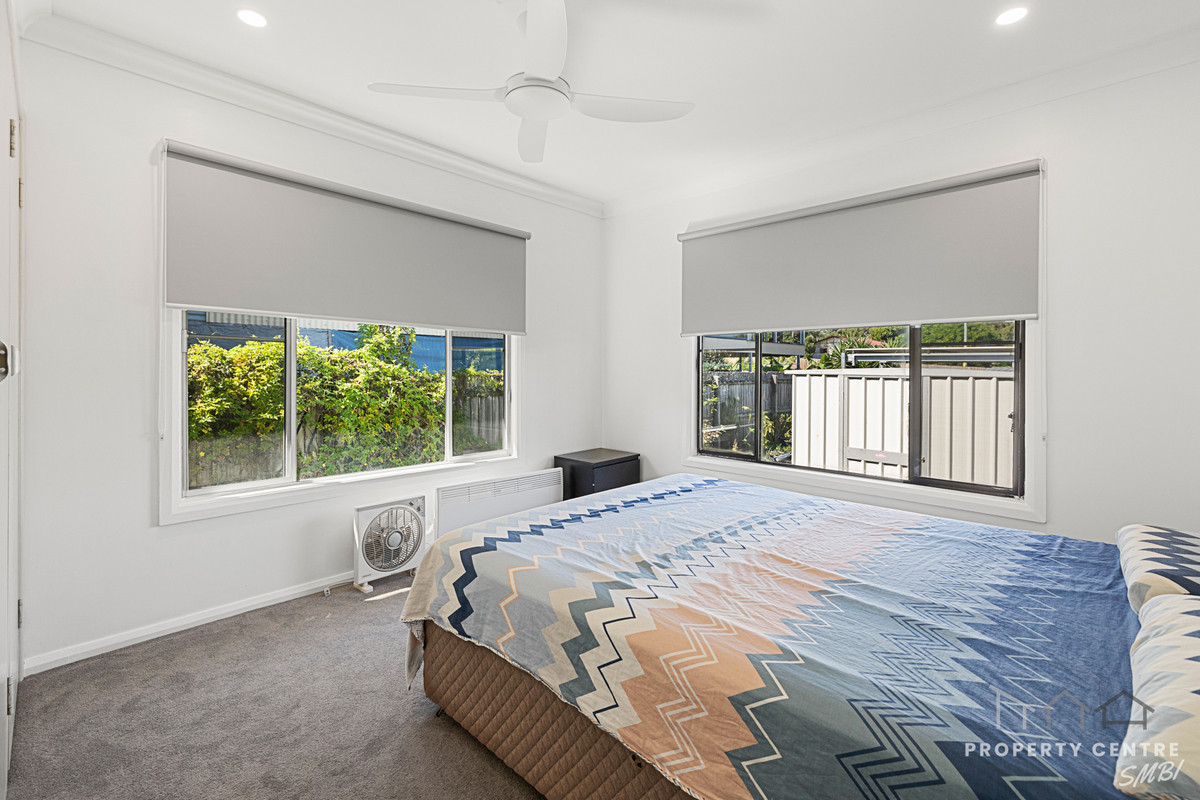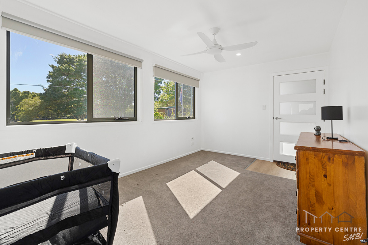 Bedroom 2 with timber floors and access to rear deck, ceiling fan Bedroom 3, robe, ceiling fan Loads of storage Internal laundry with extra toilet Rear deck
