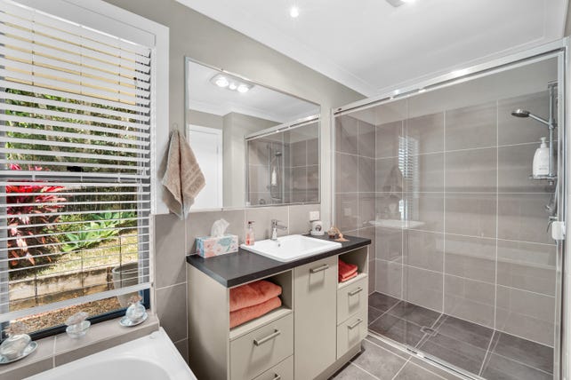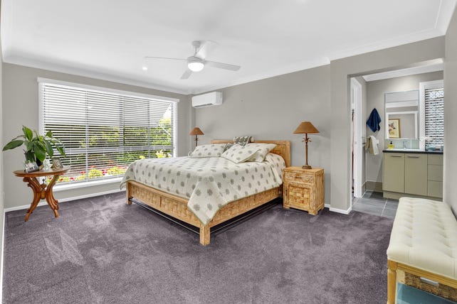 • Spacious master retreat: Carpeted with air conditioning, ceiling fan, large walk-in robe, ensuite with double vanity, shower, separate toilet, and private awning.