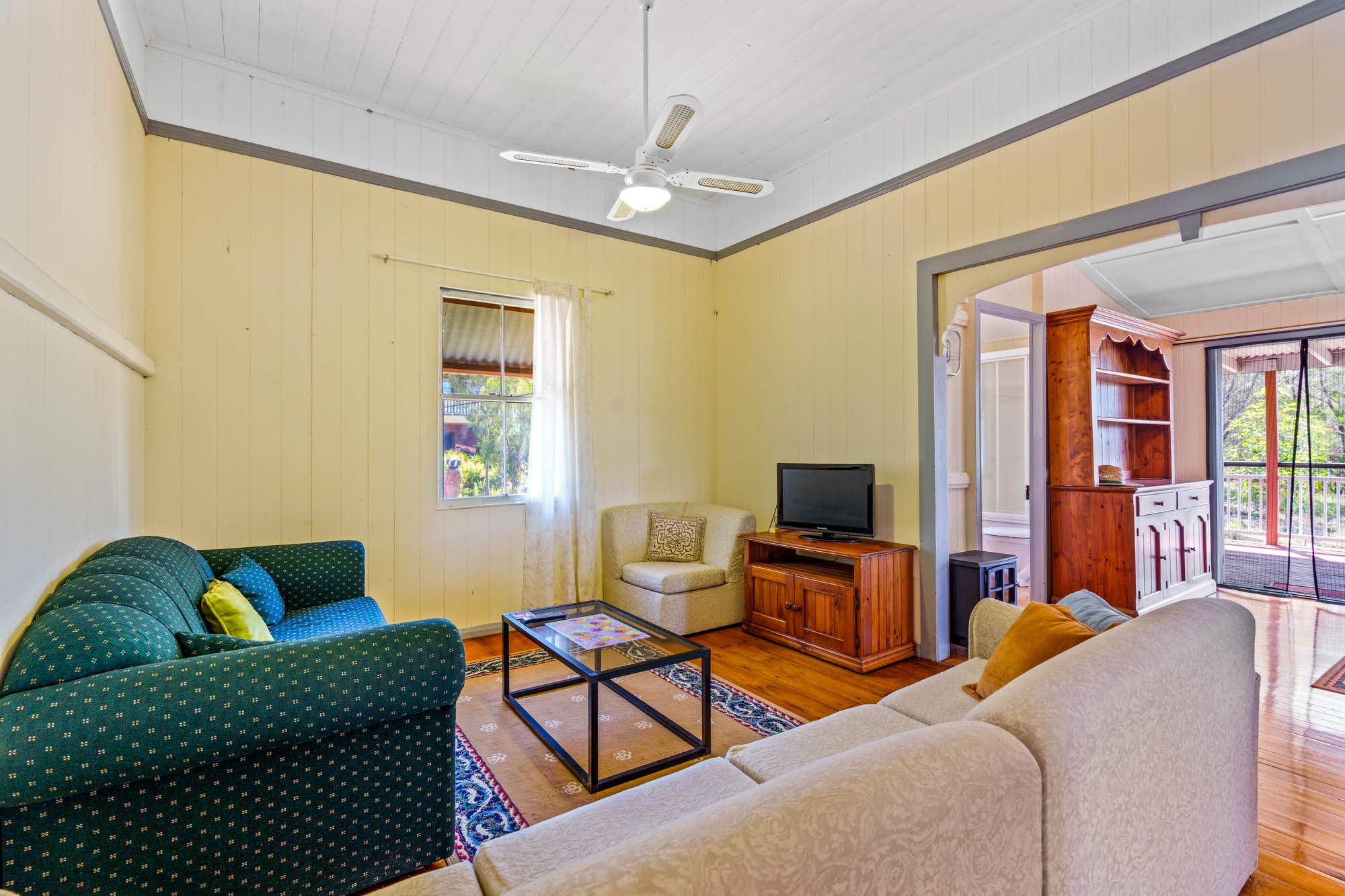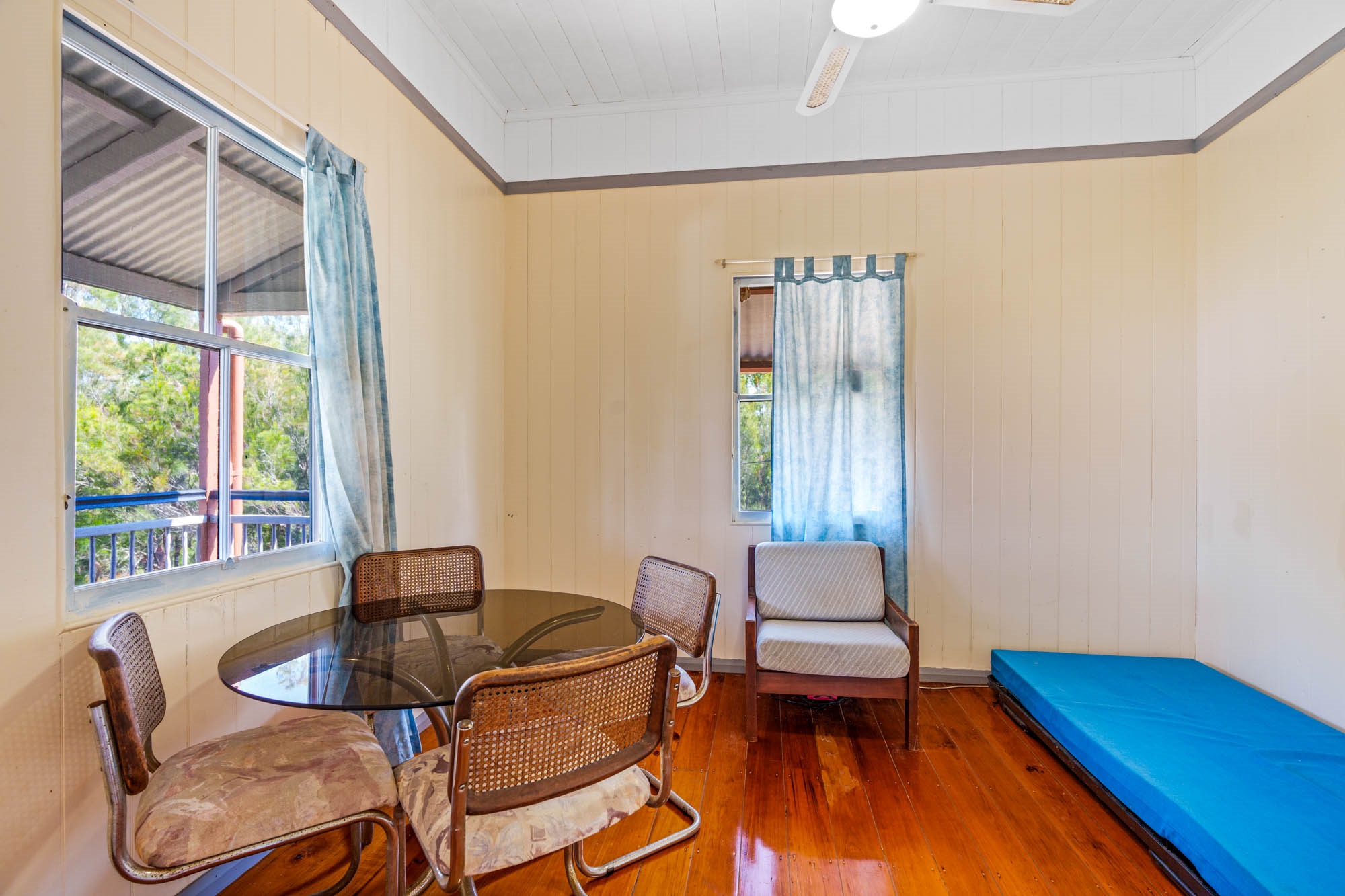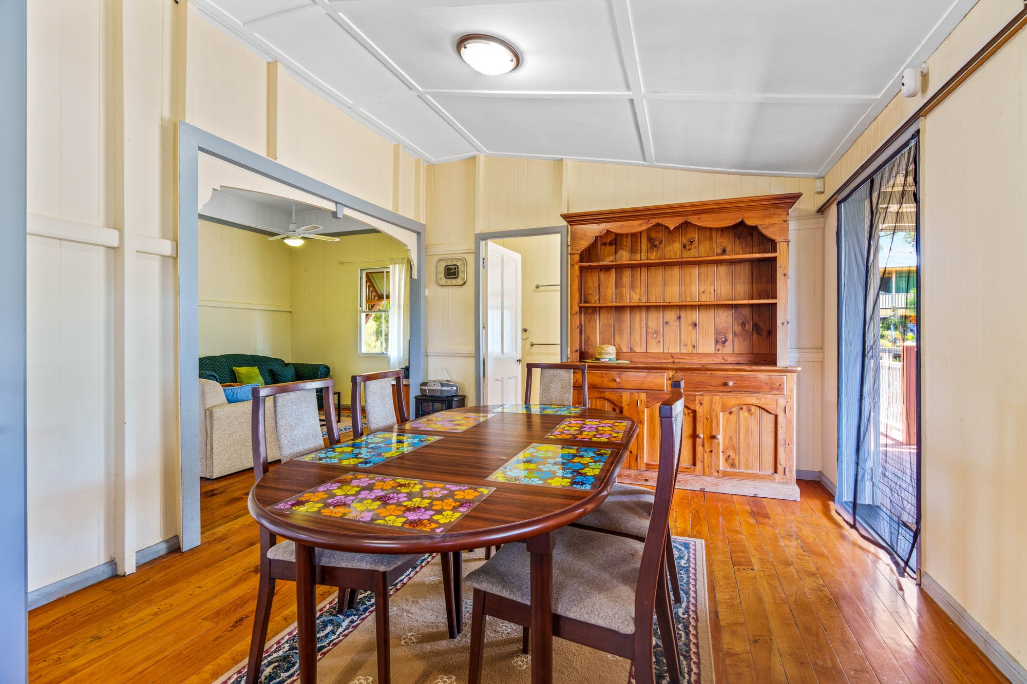 ๐ฟ Period Charm: Polished timber floorboards and traditional vertical tongue-and-groove walls ๐๏ธ Elegant Design: Decorative support arch in the lounge room, adding a touch of sophistication ๐ฆ Spacious Living: High-set foundation with vast space underneath, perfect for storage or future expansion ๐ก Classic Queenslander Layout: Step up the grand two-abreast front stairs to the covered deck, the perfect spot to take in the stunning views and morning sun. โ๏ธ A cozy sunroom with French doors connects to the main lounge area, where youโll find access to one of the two charming bedrooms. ๐๏ธ