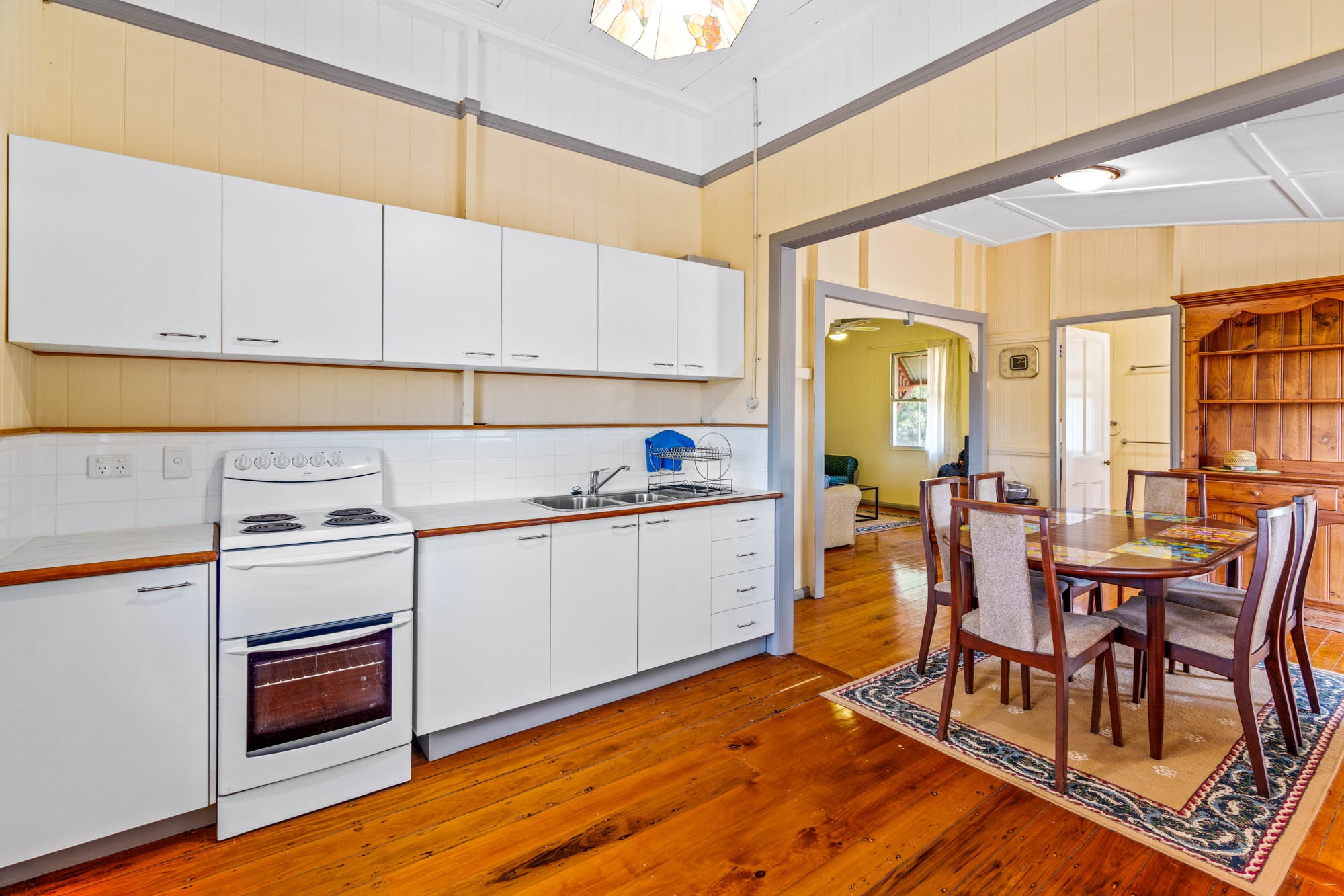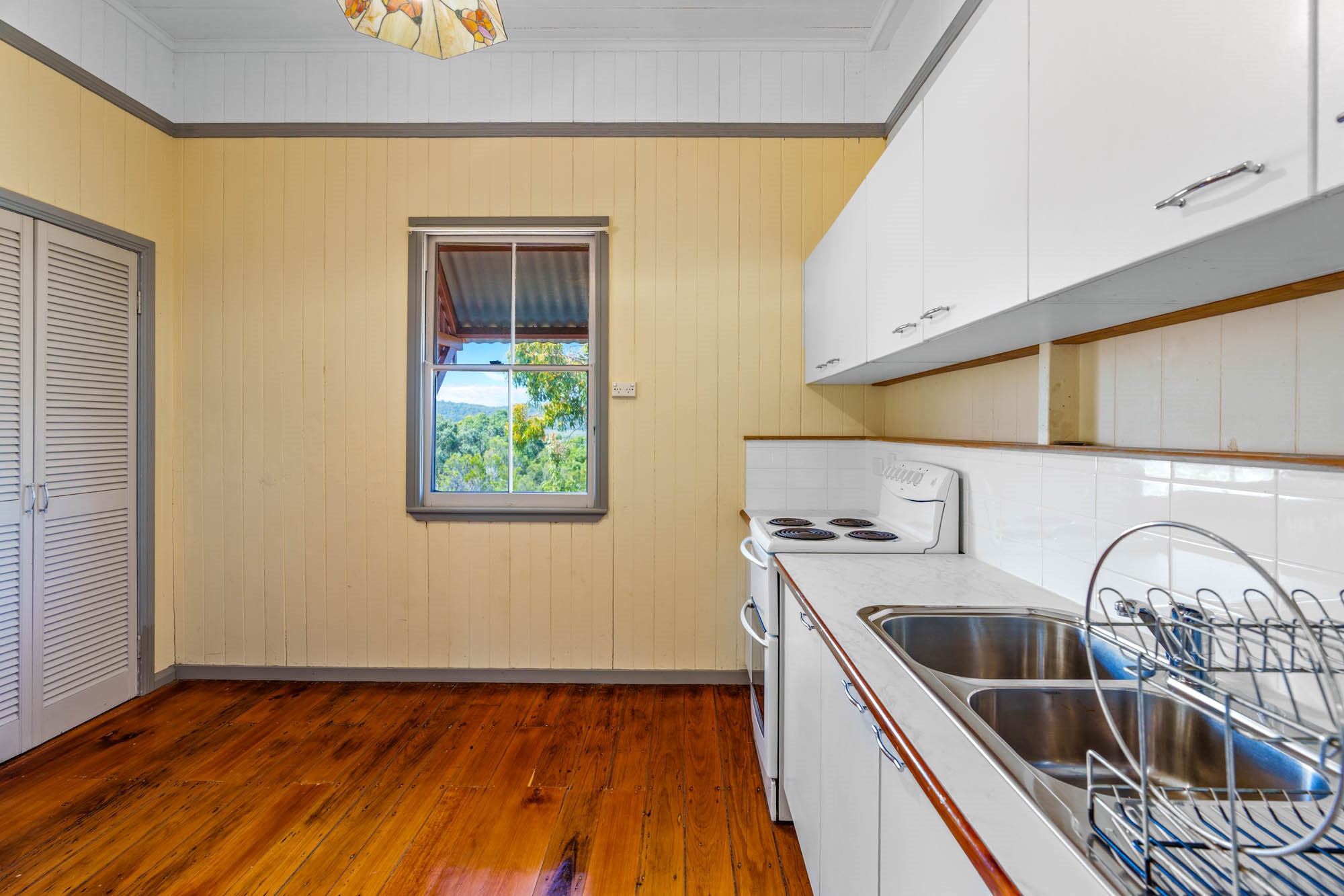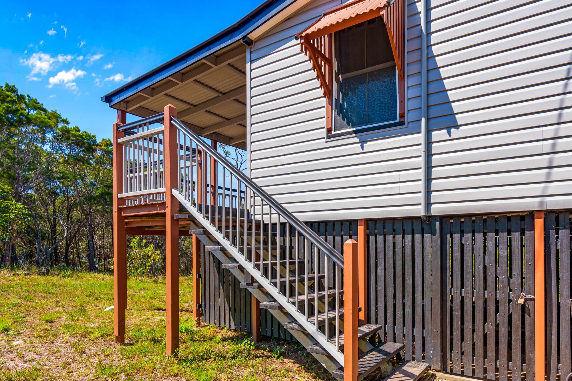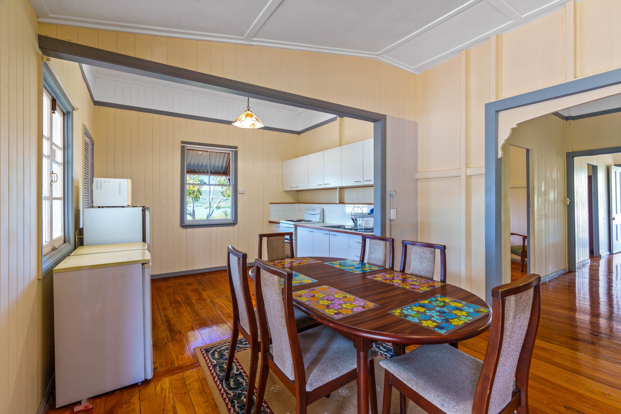 ๐ฟ Period Charm: Polished timber floorboards and traditional vertical tongue-and-groove walls ๐๏ธ Elegant Design: Decorative support arch in the lounge room, adding a touch of sophistication ๐ฆ Spacious Living: High-set foundation with vast space underneath, perfect for storage or future expansion ๐ก Classic Queenslander Layout: Step up the grand two-abreast front stairs to the covered deck, the perfect spot to take in the stunning views and morning sun. โ๏ธ A cozy sunroom with French doors connects to the main lounge area, where youโll find access to one of the two charming bedrooms. ๐๏ธ