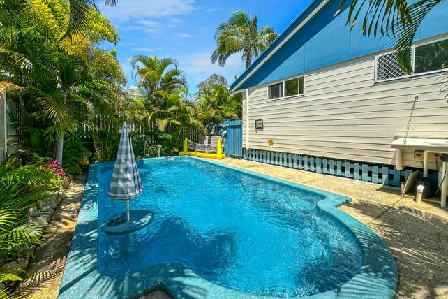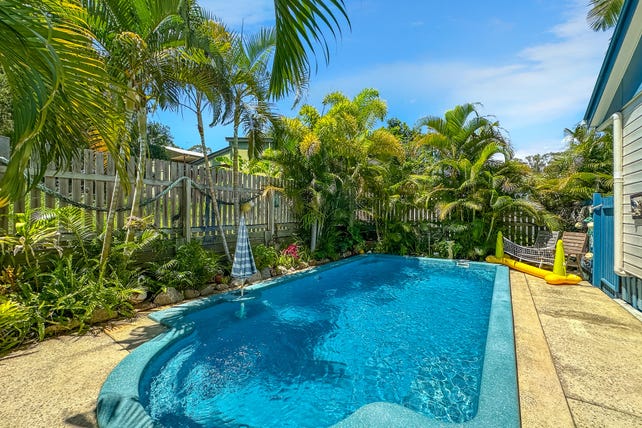 Sparkling inground saltwater pool, set amid lush tropical surrounds.