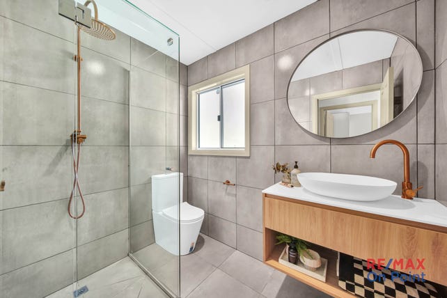 • Two beautiful new bathrooms with floor-to-ceiling tiling, rose gold tapware, showers, vanities, toilets, and mirrors