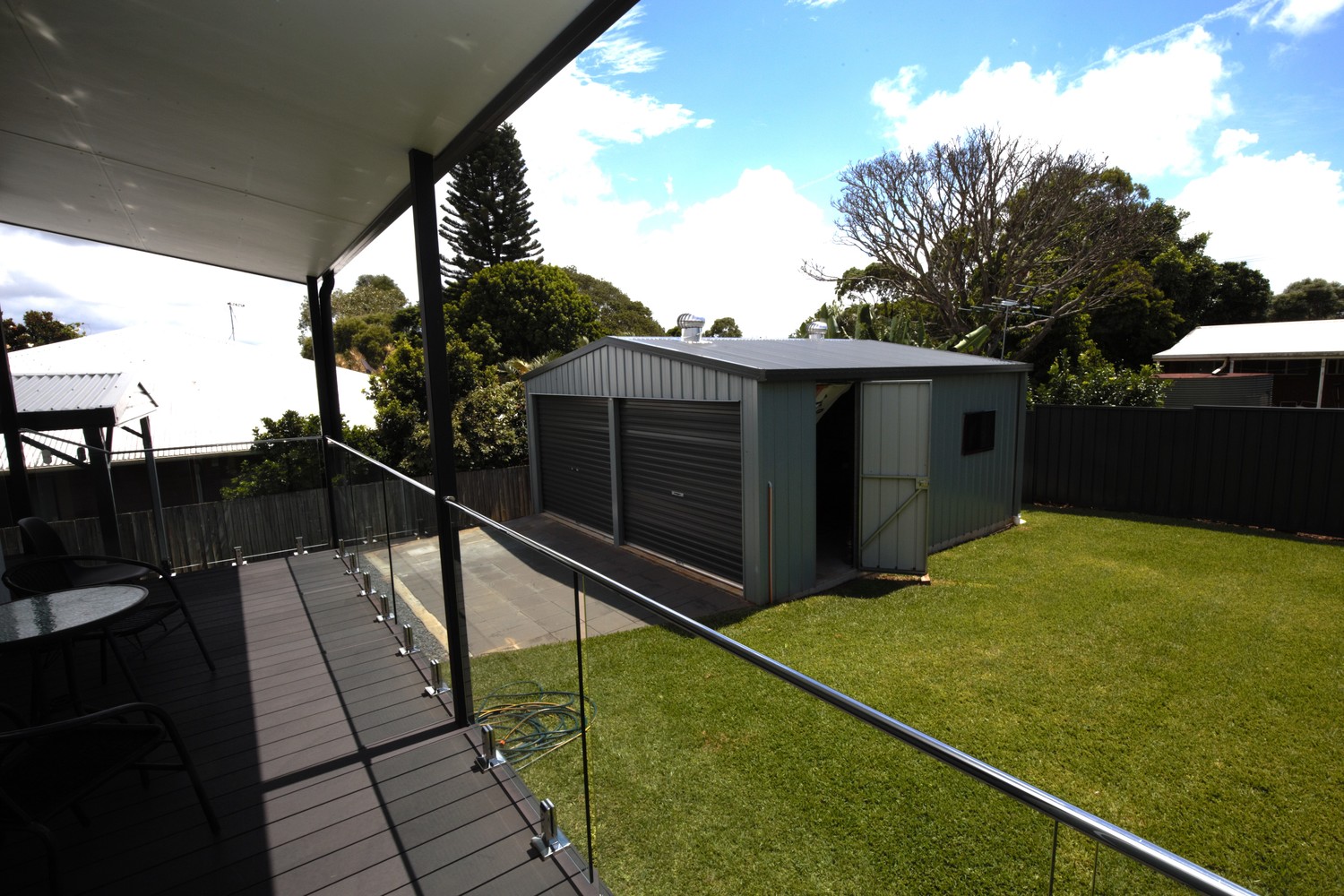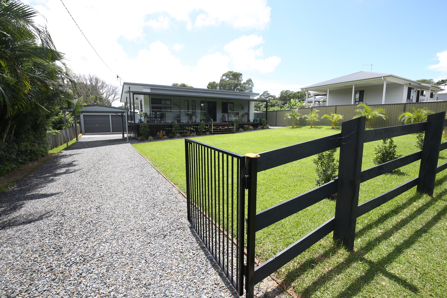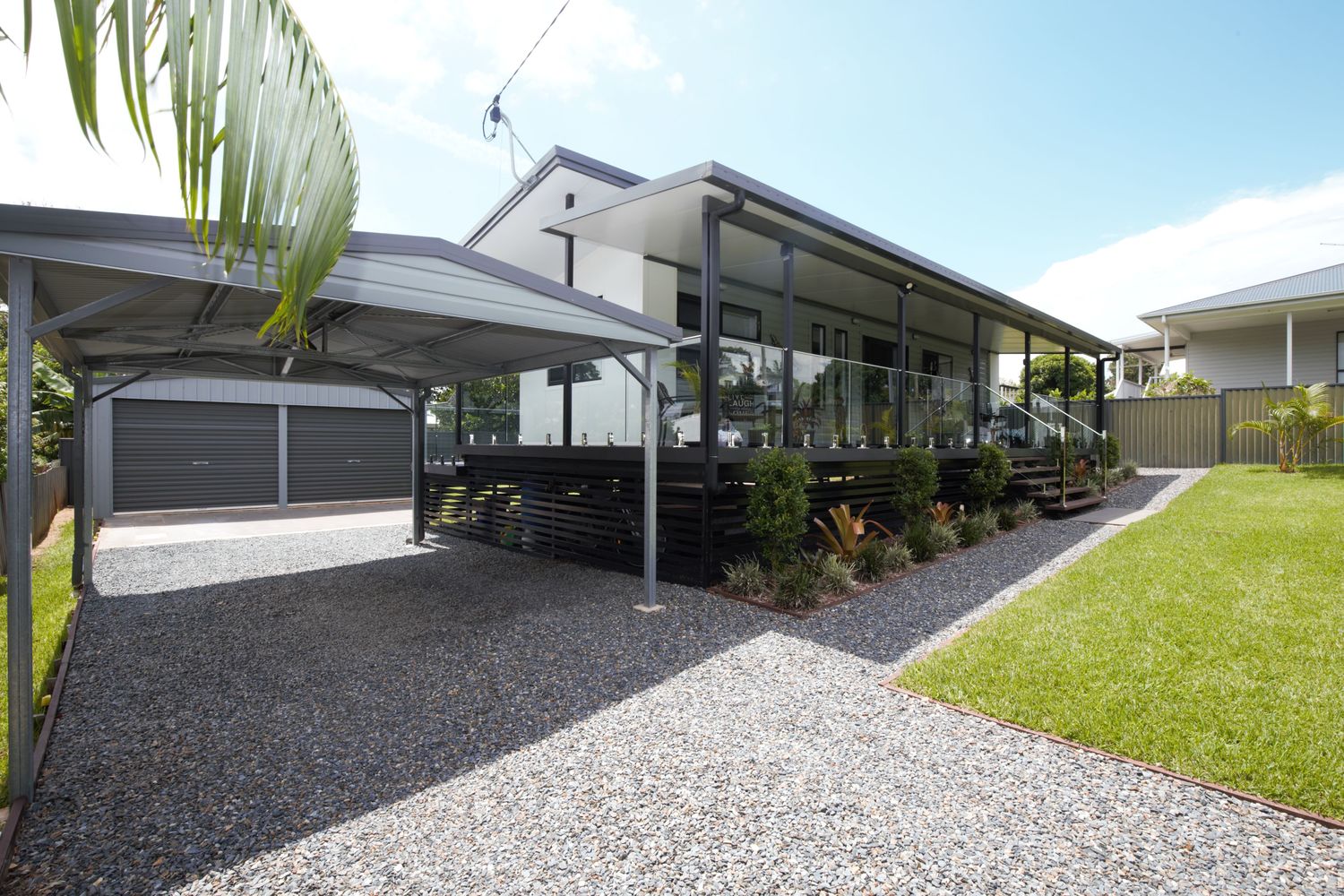 • 2 bedrooms either end with built in robes & fans • Practical kitchen with room for a dishwasher and small fridge • Compact dining/lounge area with air conditioning • Glass and chrome balustrading • Prowler proof screens on all windows and doors • Block out roller blinds • Wood grain laminate flooring • Eco decking on the 3 sided verandah • Cupboard laundry on the back balcony • Fully fenced with a yard ready to transform • Gravel, Concrete and paved driveway leading to the double garage • Garage has power, lights and fans • Ready to turn it into extra living area, man cave or games room • Fully insulated home and balcony roof • Colourbond cladding • Large block of 711m2 • 700m to the Town Centre, School, Pool, Hardware, Cafe's, Jetty and lots more.
