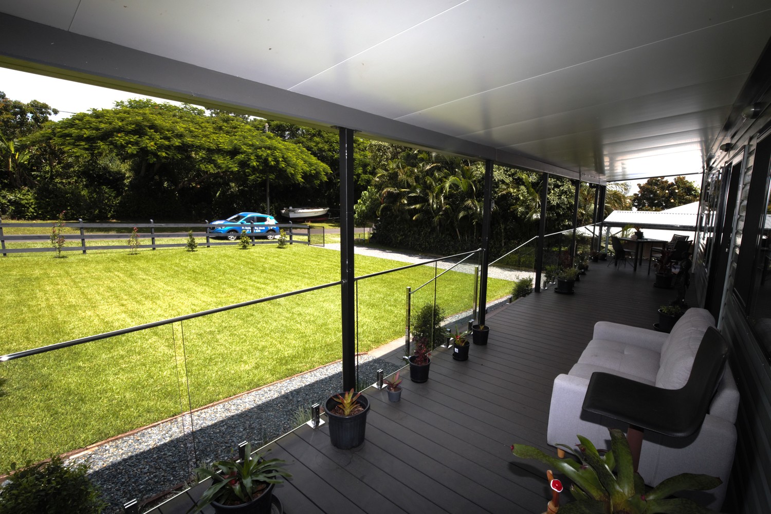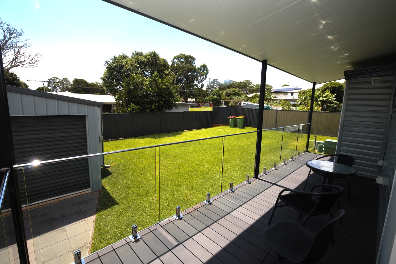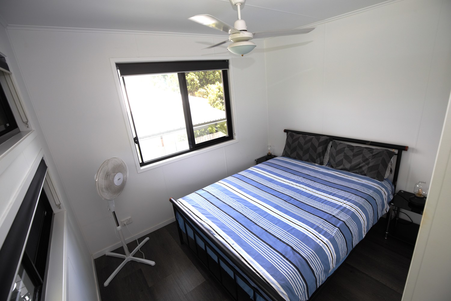 • 2 bedrooms either end with built in robes & fans • Practical kitchen with room for a dishwasher and small fridge • Compact dining/lounge area with air conditioning • Glass and chrome balustrading • Prowler proof screens on all windows and doors • Block out roller blinds • Wood grain laminate flooring • Eco decking on the 3 sided verandah • Cupboard laundry on the back balcony • Fully fenced with a yard ready to transform • Gravel, Concrete and paved driveway leading to the double garage • Garage has power, lights and fans • Ready to turn it into extra living area, man cave or games room • Fully insulated home and balcony roof • Colourbond cladding • Large block of 711m2 • 700m to the Town Centre, School, Pool, Hardware, Cafe's, Jetty and lots more.