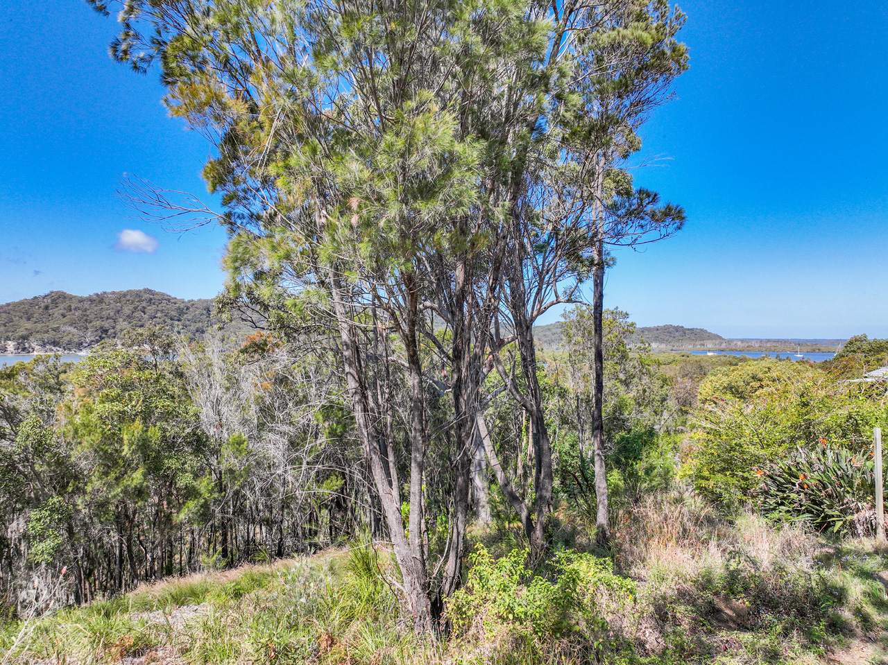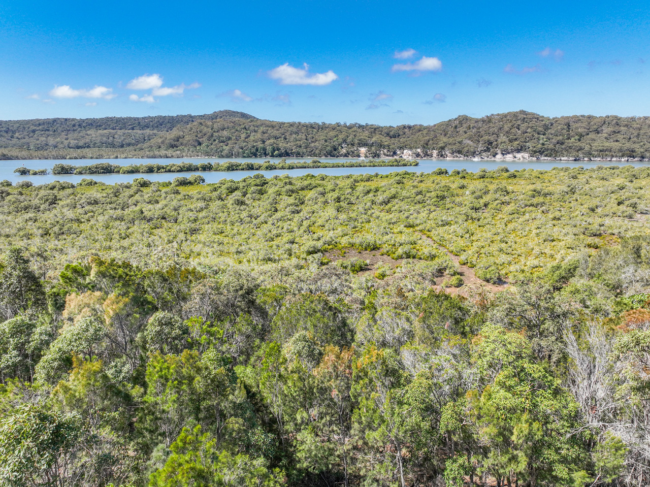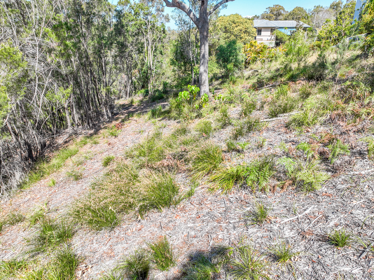 An unusual, triangle-shaped block which slopes to the East, this recently-cleared site has a light scattering of saplings and filtered water views. Bay breezes keep this site cool and sleepy coves provide a playground for the marine life, while the aspect offers views to the Gold Coast and both North and South Stradbroke islands.